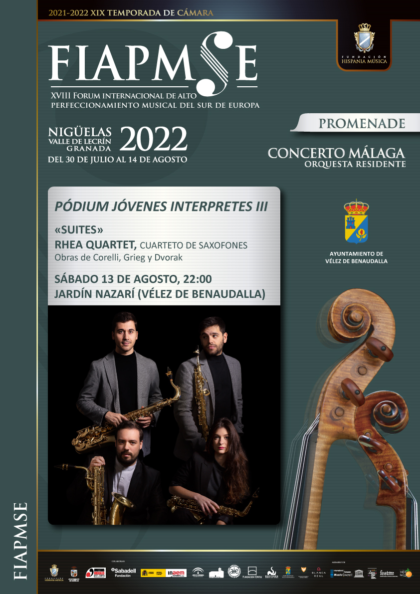 Rhea Quartet es un cuarteto de saxofones formado por cuatro jóvenes músicos comprometidos con la interpretación como medio de diálogo. La madurez y la innovación de sus propuestas, así como la espontaneidad y el rigor de sus interpretaciones son los aspectos más valorados por el público y la prensa especializada. Formado por personalidades musicales diferentes, configuran una identidad común con un lenguaje propio. La formación apuesta por contribuir a la divulgación de la cultura, desde la perspectiva de la música de cámara, y por la colaboración y el trabajo directo con los compositores actuales en la búsqueda y desarrollo de nuevos repertorios y propuestas.