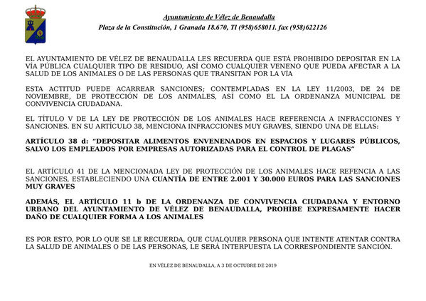 El Ayuntamiento de Vélez de Benaudalla recuerda lo siguiente: